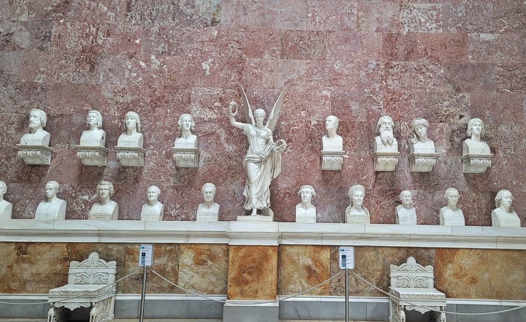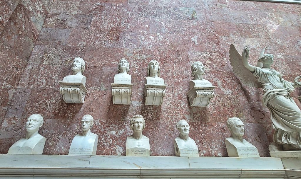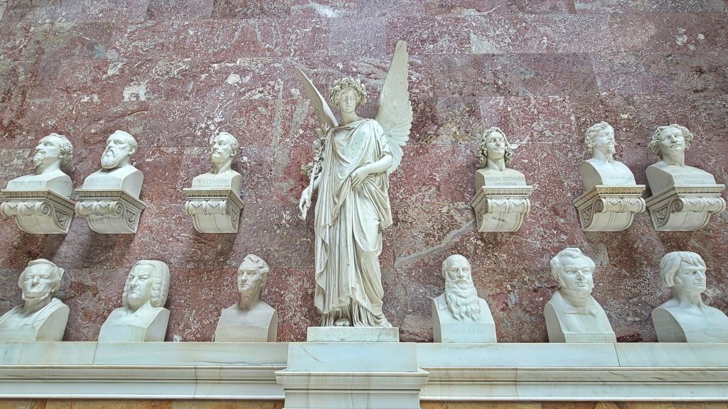 整座建筑仿照古希腊神庙帕台农神庙样式,以洁白大理石构筑,象征德意志民族精神的“荣誉殿堂”,收藏近两百位德语文化圈杰出人物的雕塑与纪念牌,涵盖诗人、作曲家、哲学家、科学家、政治家等各领域代表人物。