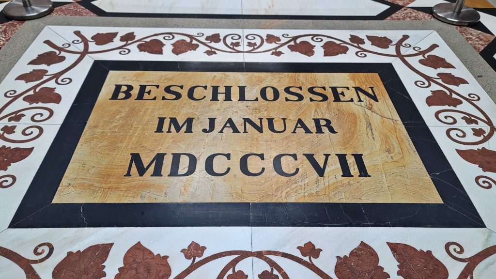 纪念堂入口地面铭文,德语意为“1807年1月的决定”,这一日期标志着巴伐利亚王储路德维希一世首次构思修建这座纪念堂的时刻。