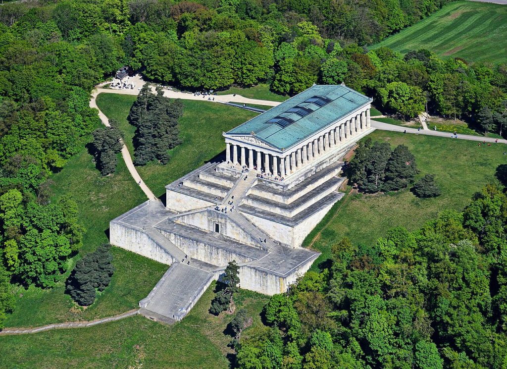 瓦尔哈拉纪念堂 (Walhalla Memorial)坐落在多瑙河畔的高地之上,由巴伐利亚国王路德维希一世于19世纪主持兴建,1830—1842年间完成。Walhalla”源自北欧神话中的英灵殿(Valhalla),象征英雄死后归宿。路德维希一世借此表达:所有为德意志文化作出贡献的人,都应在此“永生”。