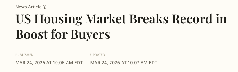 供应增加正在改变市场走势。数据显示,截至今年2月,美国房屋中位成交价为429,226美元,同比仅上涨0.9%,明显低于2025年同期超过3%以及2024年超过6%的涨幅。