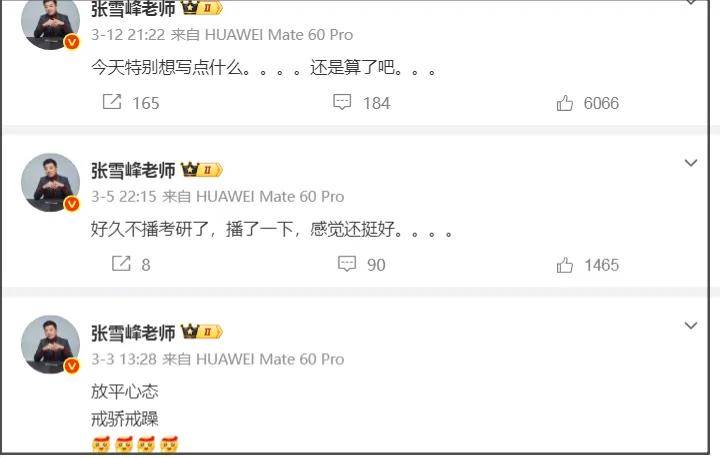 张雪峰其他社媒基本都是宣传工作的工具,微博还保留一些个人想法。翻看他最后的几条留言,不难看出有很多遗憾,尤其是那句“今天特别想写点什么,还是算了吧”,再也没有机会写了。