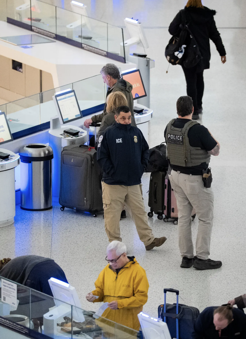 ICE在肯尼迪机场,图源:nytimes