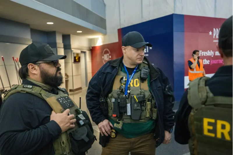一些旅客表示,尽管他们知道ICE的出现是协助人群管理和安保,而非抓捕非法移民,但依然感到害怕和紧张。