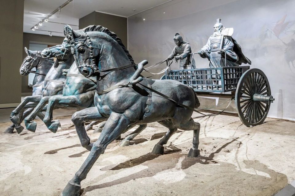 ▲姜太公封齐战车雕塑,现藏于山东省淄博市齐文化博物馆。