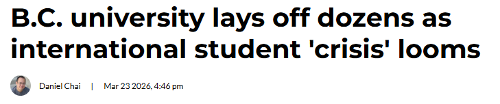 随着春季学期接近尾声,加拿大高等教育系统正面临新的挑战。由于国际学生数量大幅下降,卑诗省多所高校出现严重财政压力,其中部分院校已启动裁员措施,引发广泛关注。