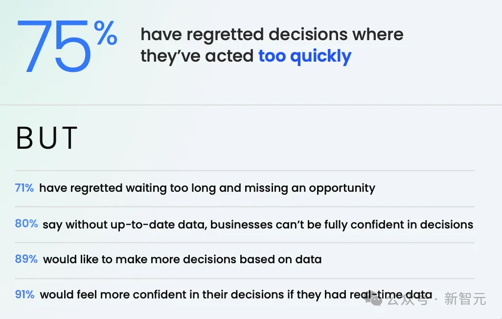 60%的高管说,在他们的层级上,数据太难获取;71%的人表示,数据送到他们手里的时候已经过时了;62%的人说根本没有足够时间在决策前分析完所有数据。