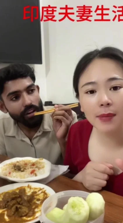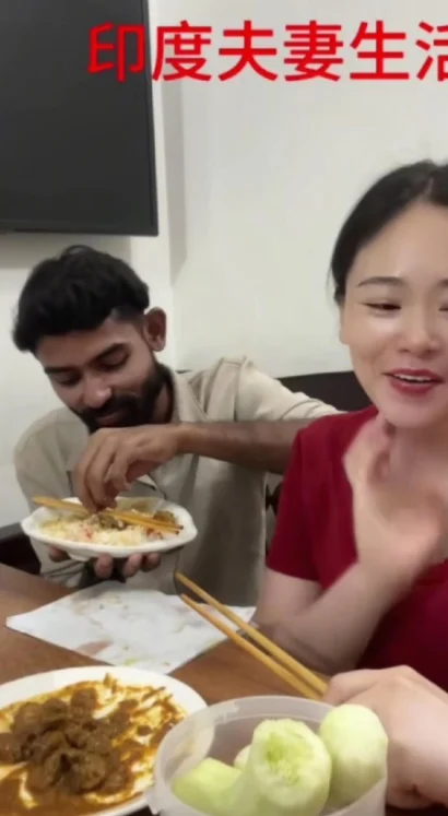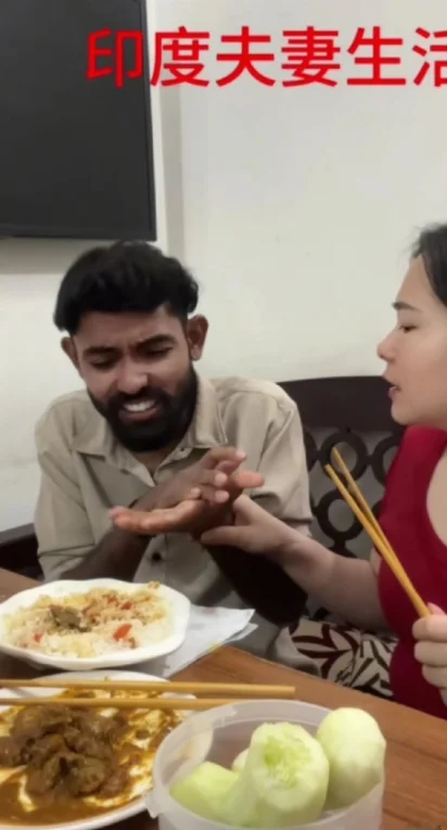 对很多国内观众来说,这一幕多少有点“文化冲击”,毕竟在中国,用筷子已经是深入骨髓的习惯,而在印度,用手抓饭同样是再正常不过的用餐方式,问题就出在,直播间是中国观众主场,于是女主瞬间进入“教学模式”,一把按住老公的手,掏出筷子现场教学,还顺带放话:再用手抓,就要“打手警告”。