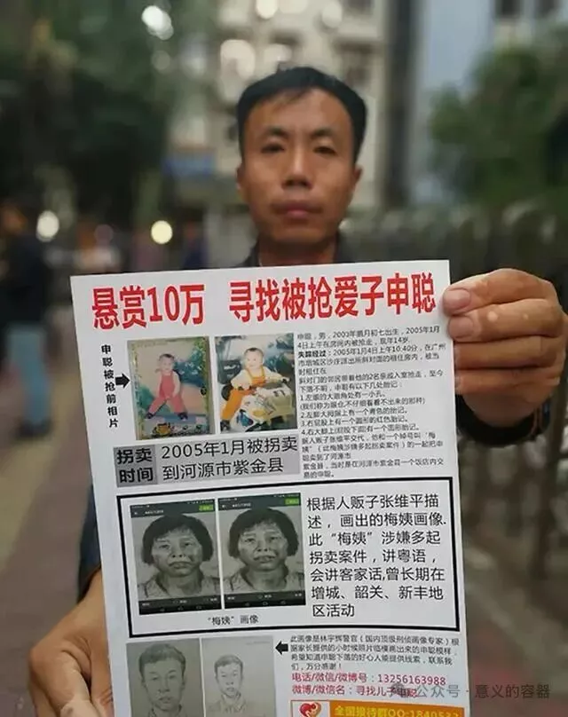 “梅姨”作为“介绍人”,或许从未直面被拐家庭的心碎:申军良的儿子被拐走时仅一岁,父母因悲痛精神崩溃,多年寻子耗尽家产。