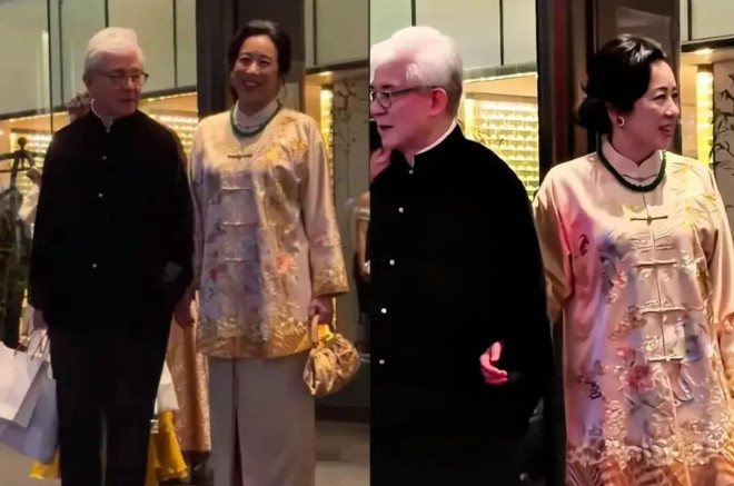 朱玲玲的第二任丈夫罗康瑞也陪同亮相,一头白发搭配中式立领礼服,两个人画风超般配。朱玲玲也很自然地把手搭在丈夫胳膊上,看得出感情非常好。