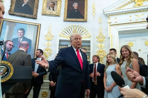 当地时间3月24日,美国总统特朗普在白宫椭圆形办公室。 美联社