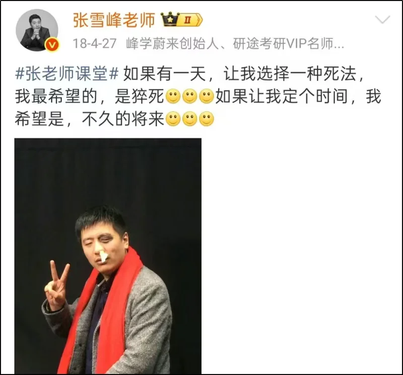 他说,可能有一天会有一个热搜,名字不复杂,就叫“张雪峰去世了”,后面跟着两个小蜡烛。