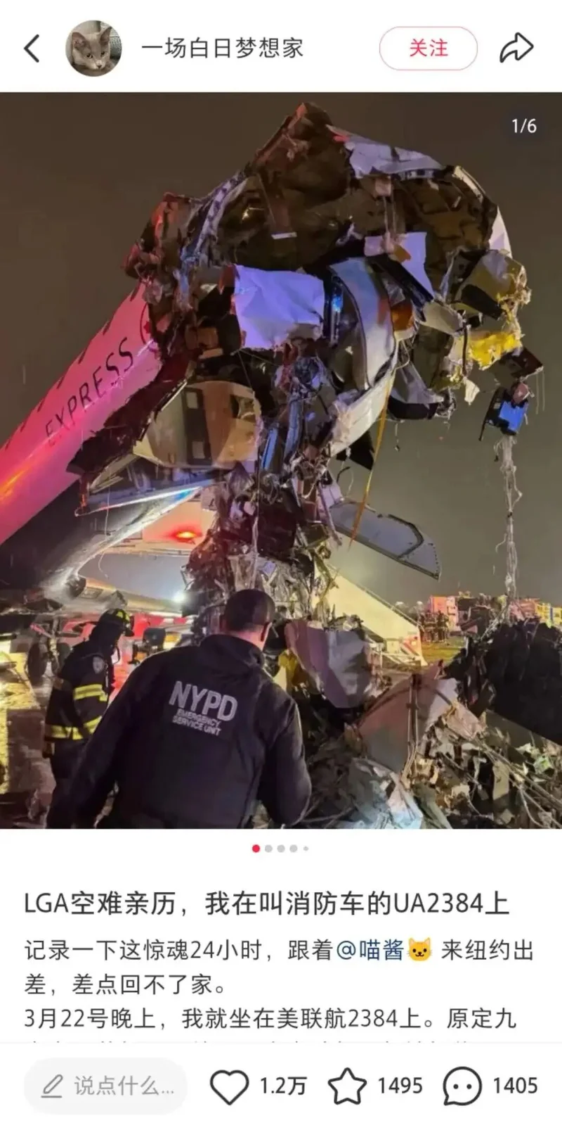 加航AC8646航班在纽约拉瓜迪亚机场与消防车相撞的惨剧今天又有新信息爆出,美联航的一个航班竟成导火索。