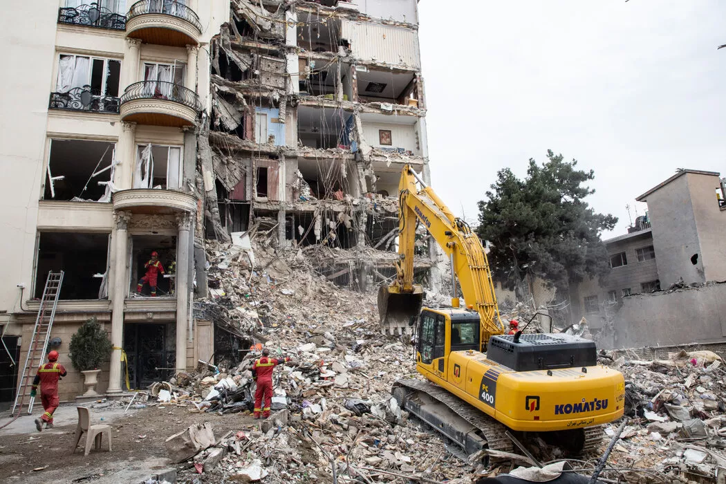 周一,德黑兰一处公寓楼遭空袭炸毁。