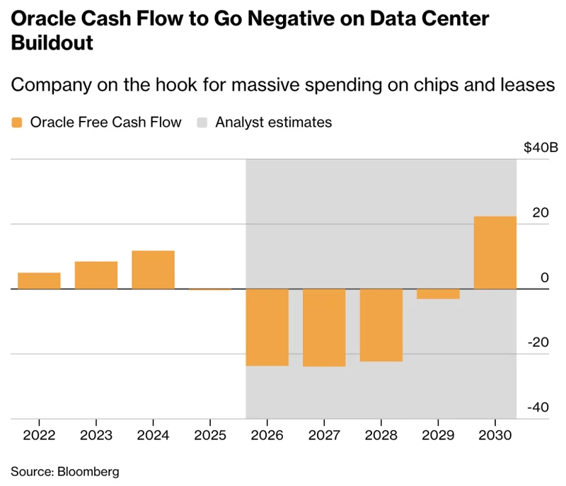 华尔街预计,甲骨文云业务在数据中心上的支出,将在未来几年把公司的现金流拖入负值,直到相关投入在2030年前后开始显现回报。