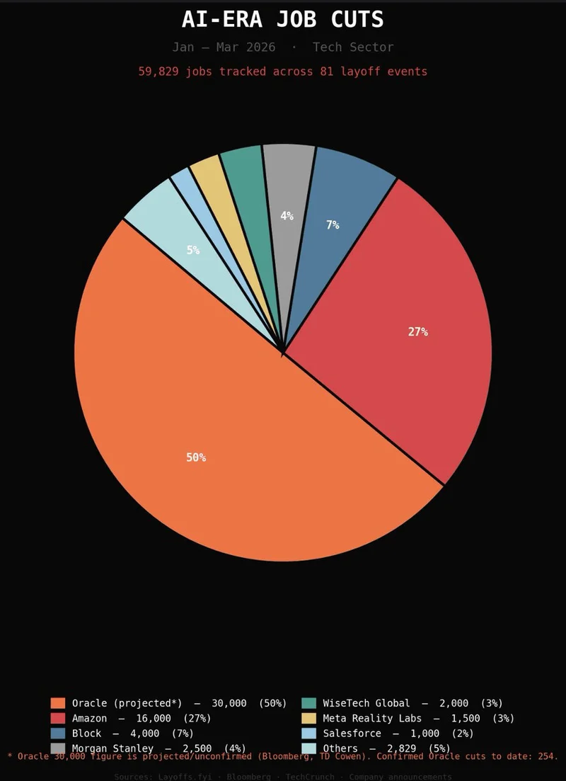 它借不到足够多的钱——多家美国银行已经缩减了对Oracle大规模AI数据中心扩张的融资。于是,它做了一件事:裁掉员工,把工资单变成服务器的电费。