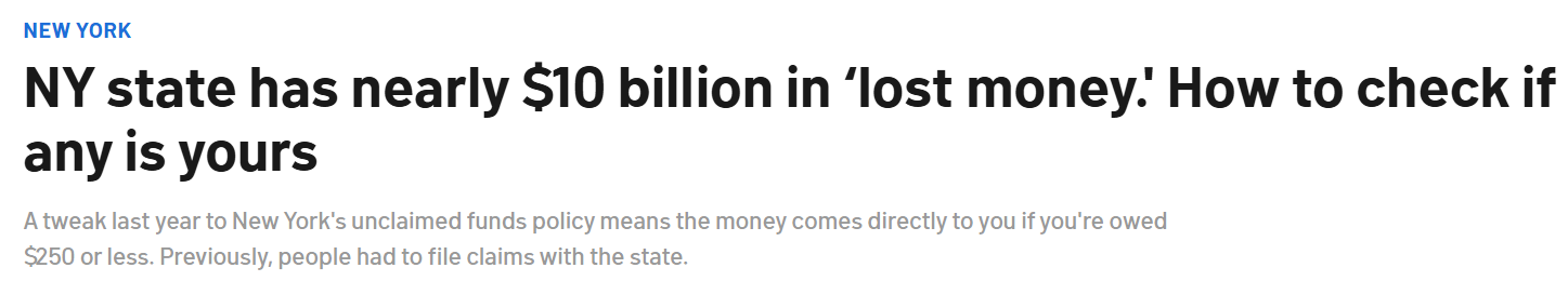 谁不喜欢突如其来的意外之财呢?在纽约州,你可能有一笔属于自己的钱,正静静地躺在政府的账户里等着你,而你对此却一无所知。