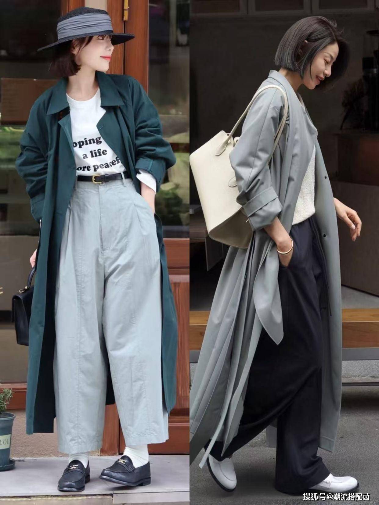 其实,不用那么纠结,不知道该怎么穿的时候,完全可以闭眼冲“风衣+阔腿裤”。这个搭配非常经典,特别适合早春气温忽高忽低的时候穿,耐看又有气质,日常出门、上班通勤都能hold住。