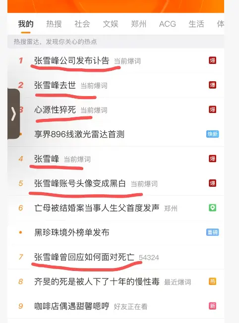 死讯刚传出时,热搜爆了好几个,小热搜也是一个接一个,到现在仍未停止。