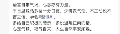 就是不要用负面的语言去表达一些事,一些心情。