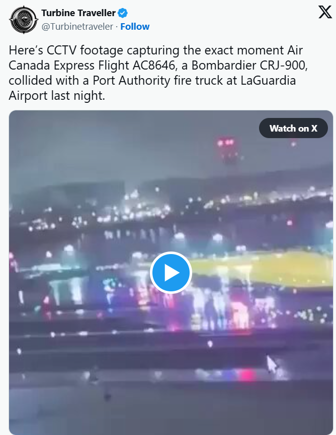 美国调查人员最新披露了周日纽约拉瓜迪亚机场客机与消防车相撞事故的最新进展,指出事故发生前一系列关键安全环节接连失效。