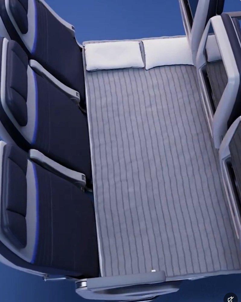 根据联合航空说明,新航班的经济舱将设置多排“放松专用排”,每排三个座位可转换为沙发或床,专为家庭旅客、独自出行者及情侣设计,兼顾经济舱票价与额外舒适度。每架飞机将提供最多12个“放松专用排”区域。