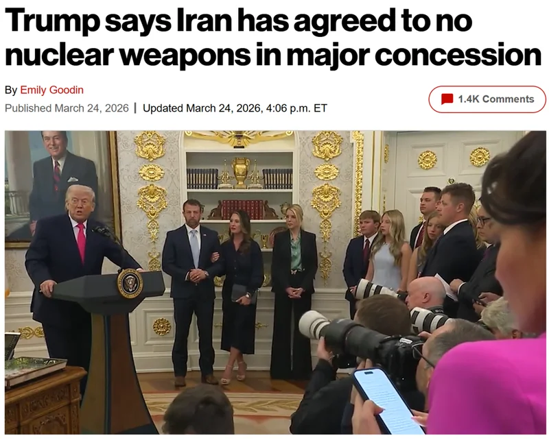 周二在白宫椭圆办公室,特朗普对着记者扔出了这颗重磅炸弹:“他们已经同意了,永远不会拥有核武器。”