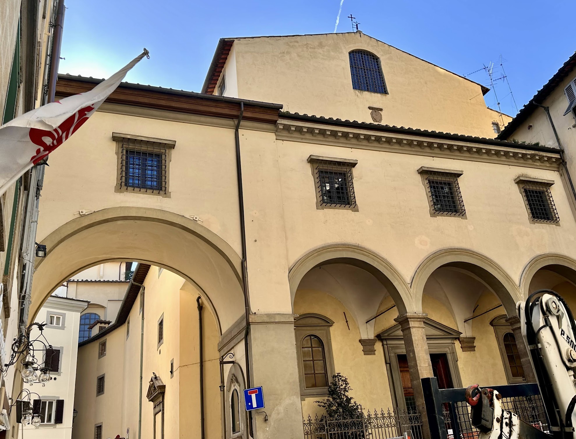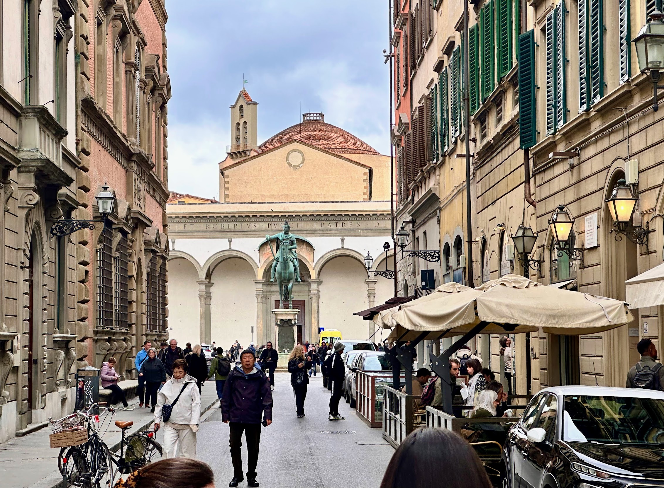 教堂同名广场正在施工,教堂多数时间关门;教堂上方就是瓦萨里走廊