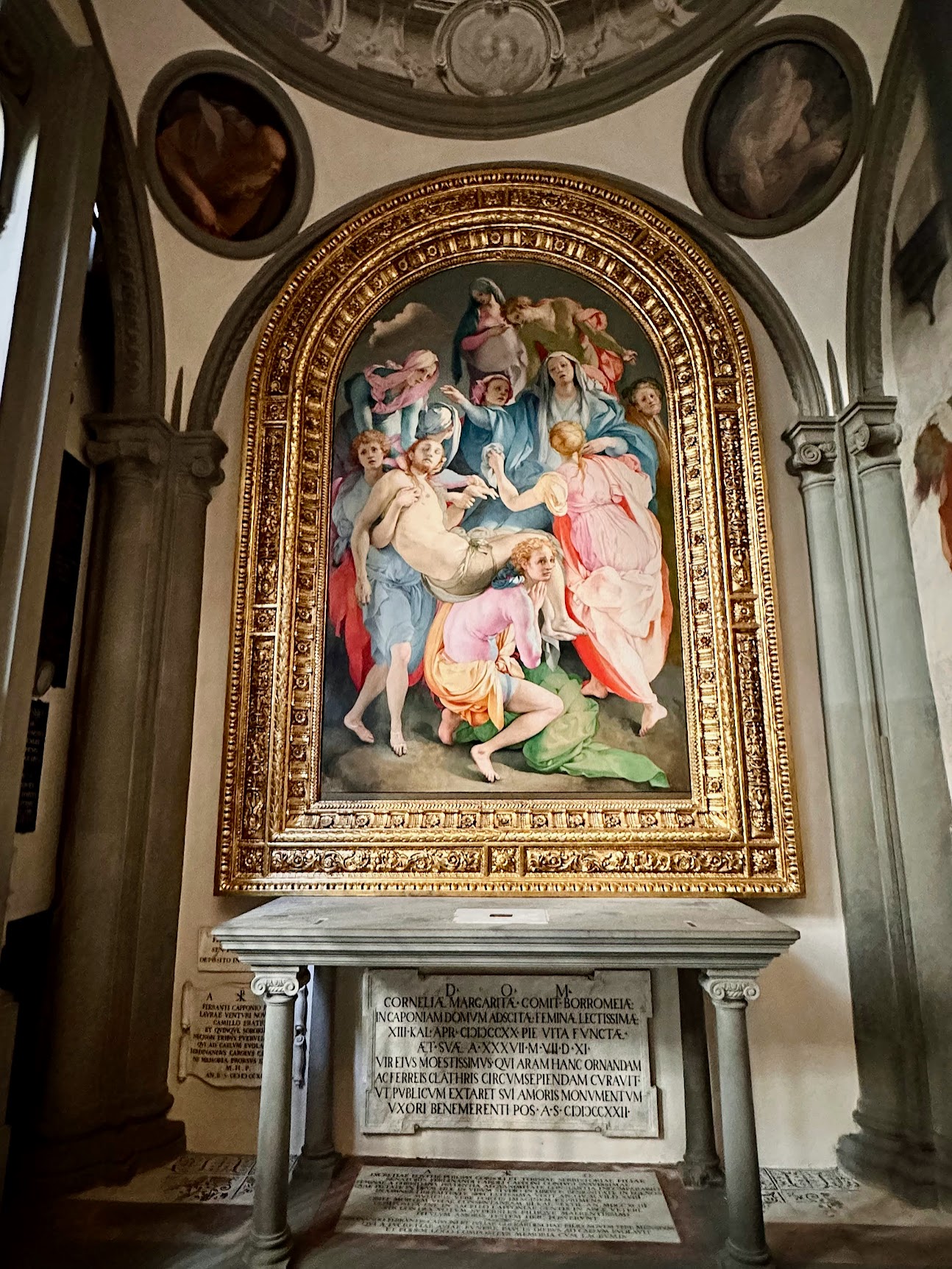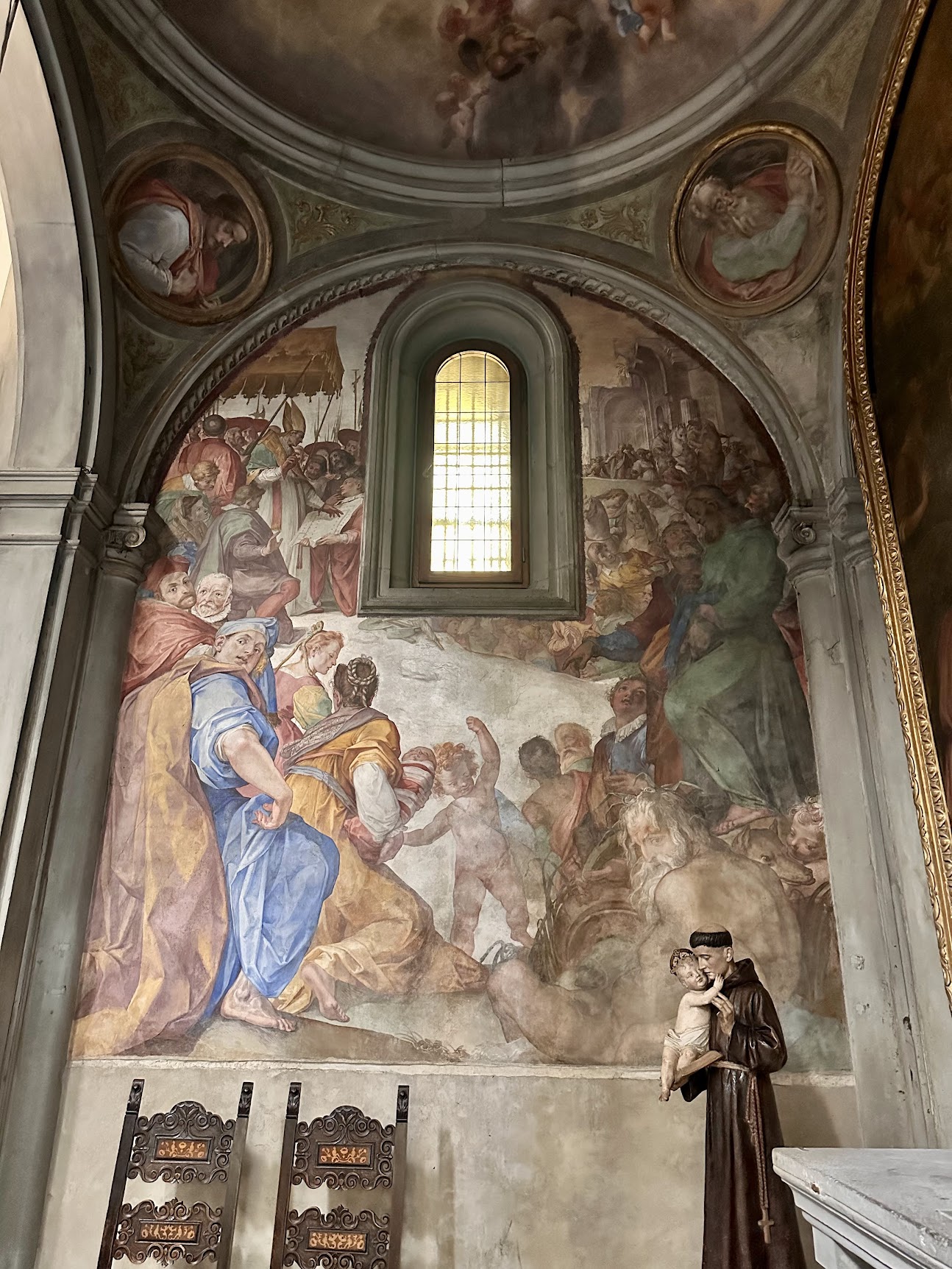 蓬托尔莫在这里开始了他最大胆的实验。为了保密,他甚至用木板将小堂遮盖起来,1528年完成揭幕时作品“令整个佛罗伦萨为之惊叹”。