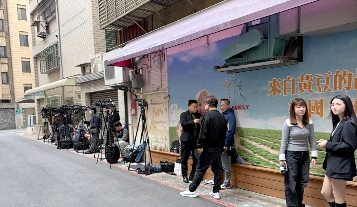 柯文哲家楼下的媒体记者,最早上午7点半就有电视台记者到场守候、连线报道,直到9点多已有约14台摄影机、24名记者。