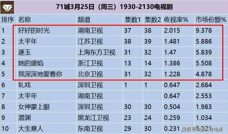 电视剧收视率排行榜,你在追哪一部?