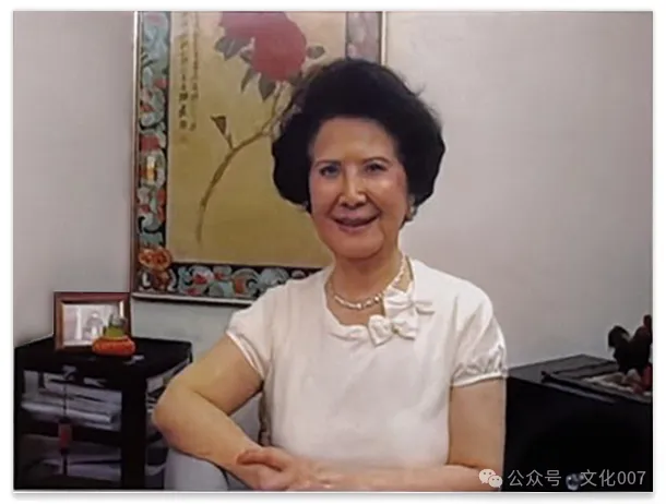 一九九〇年代,陆菊森太太摄于家中,身后所悬即本幅