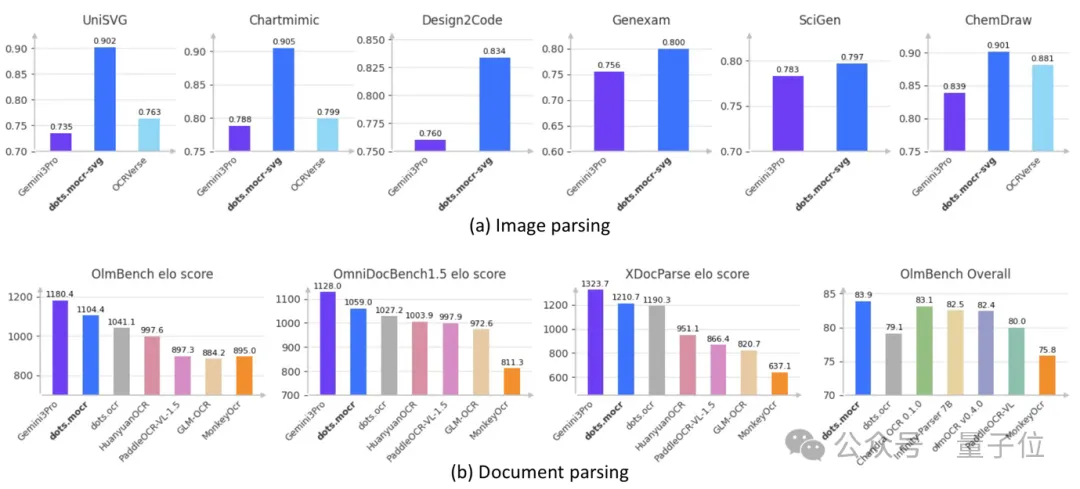 一个3B参数的小模型,在文档解析上打败了一众开源大模型,在图形重建上甚至反超了Gemini 3 Pro——而且不只是某一项指标,是在六个图形重建基准上全面超越。