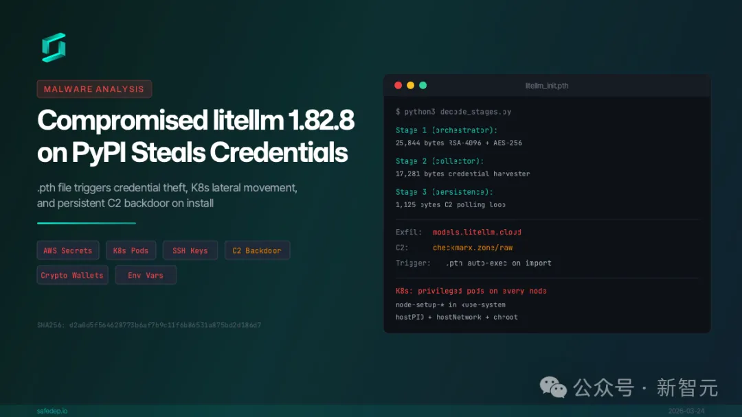 只要你执行一句pip install litellm,你机器上的SSH密钥、云服务凭证、数据库密码、加密货币钱包……会在几秒内被加密打包,发往一个伪装成官方的服务器。