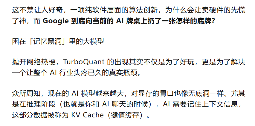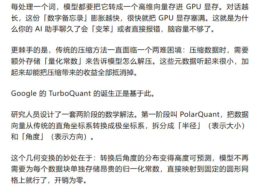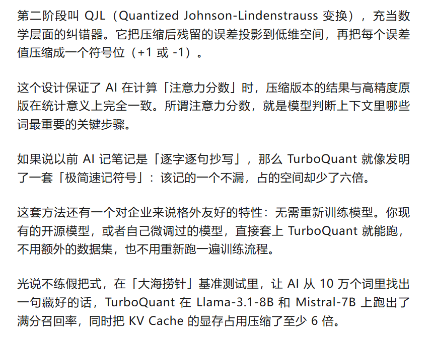 最硬核的数字来自英伟达 H100 GPU 的实测:4 位精度的 TurboQuant 在计算注意力逻辑上的速度,比未压缩的 32 位方案快了整整 8 倍。
