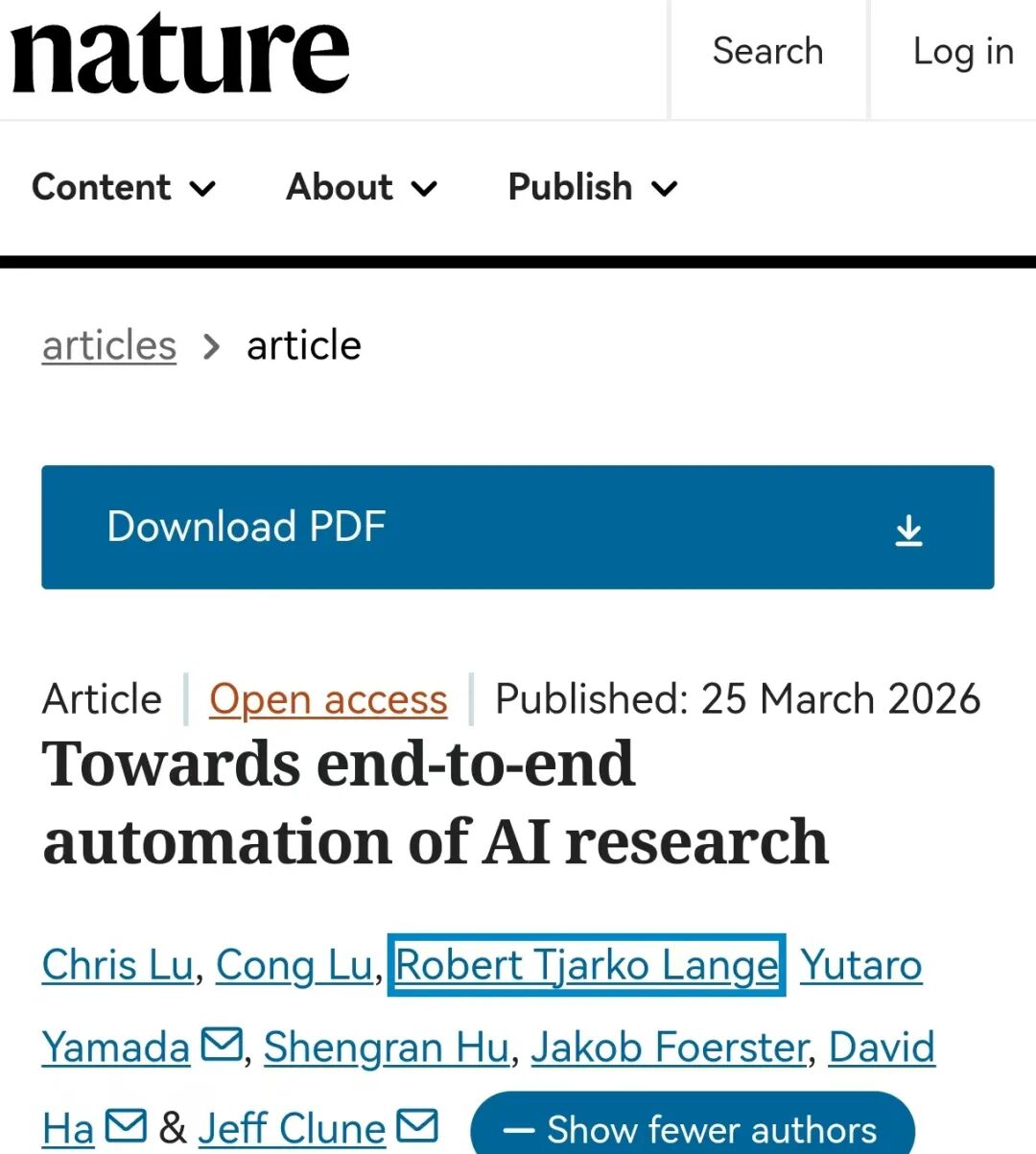 几小时前,Nature 宣布了真正意义上的 AI 科学家的首次实现。