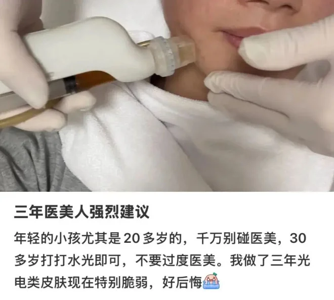 但当这些人习惯了上科技,皮肤一旦出了一点问题,就琢磨着要去美容院折腾自己时,大家才发现,皮肤早已因为长期光电而变得越来越脆弱,甚至自己的皮肤连肉毒都耐受了,想要达到以前的效果,剂量只能越打越多。