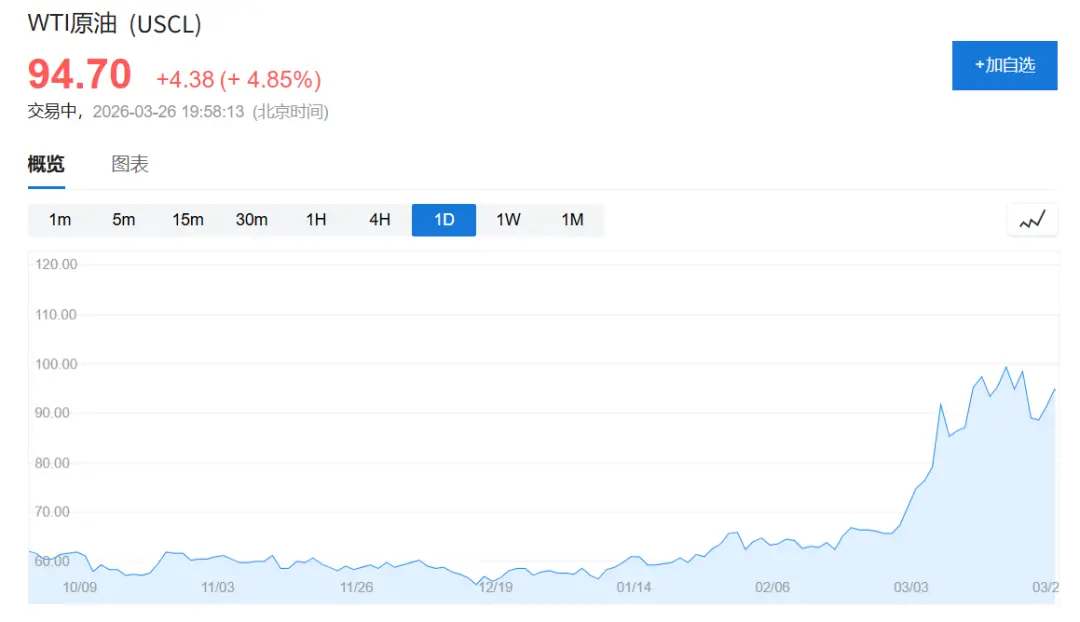 然而现实是,WTI原油价格始终被压制在每桶100美元这一关键心理关口以下,目前报约94美元附近。据媒体报道,白宫通过释放战略石油储备(SPR)、放宽对俄罗斯和伊朗的石油制裁,以及持续的口头干预,在多个维度同步压制油价。