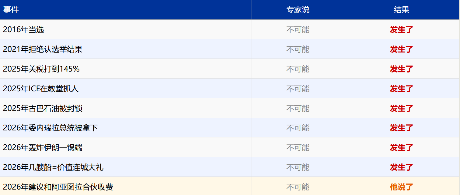 2020年,如果有人告诉你——"五年后,美国总统会在没有宣战的情况下,直接轰炸伊朗,把人家最高领袖一锅端;会派ICE上街抓人,不管你有没有绿卡;会把委内瑞拉现任总统拿下;会对全世界同时开打关税战;还会封锁古巴石油供给……然后收到伊朗几艘油轮作为'和平大礼',就宣布'我们赢了'。然后建议和阿亚图拉合伙开一个霍尔木兹收费站。"
