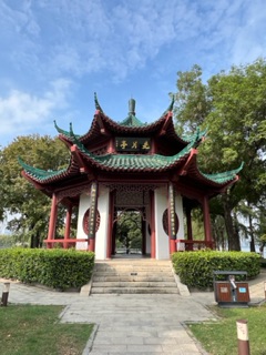 走到三面环水的先月亭,柱子上有这样一幅楹联:
