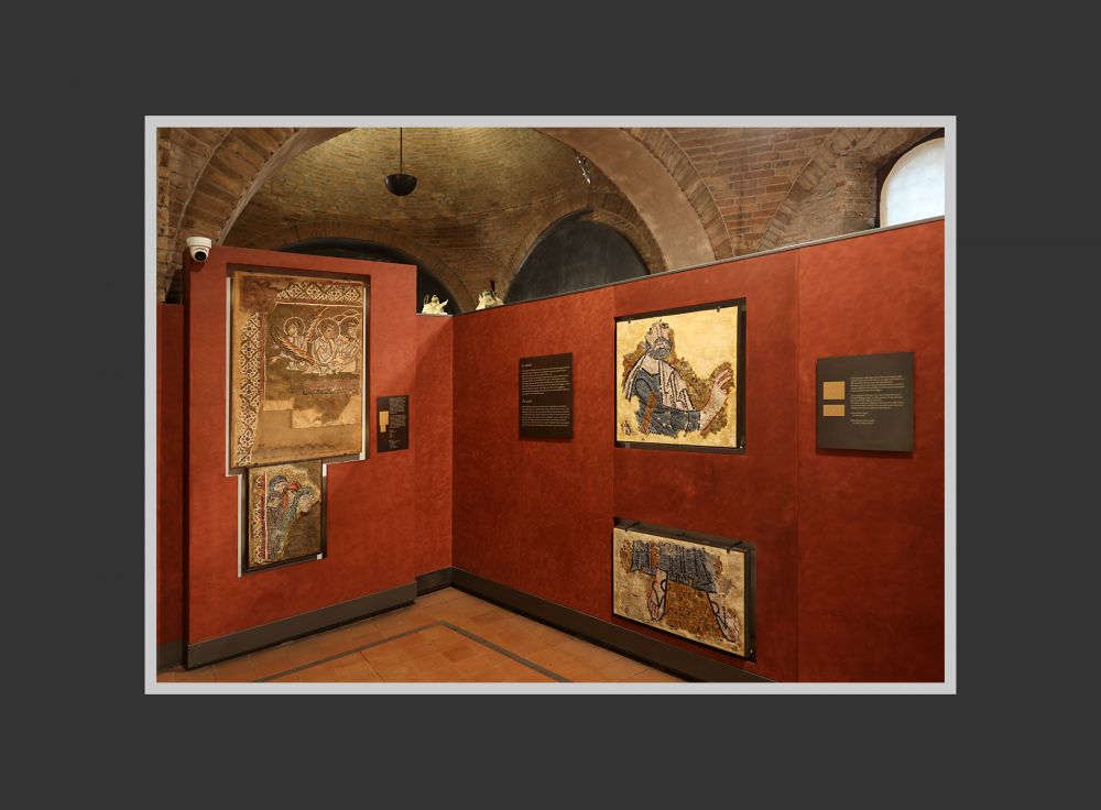 圣马可大教堂后部(接近入口处)可以经楼梯上二楼,这是教堂的展览区。在“金底马赛克艺术展示”部分,陈列了一些从教堂修复过程拆下的原作、复制片段以及制作工序展示。展厅中不仅展示马赛克的图像主题(如基督、圣徒或圣经故事),还能让参观者近距离观赏这些工艺精湛的马赛克,体会它通过光线的折射,形成一种闪烁的神圣效果。
