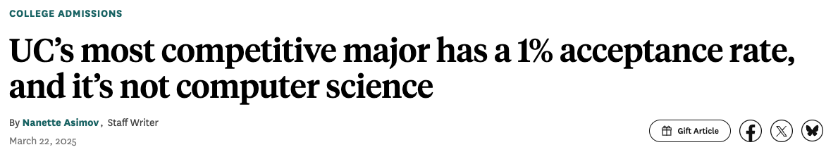 在加州大学(UC)系统里,想进入计算机科学、工程或商科等热门专业已经非常困难,但这些专业仍不是最难的,真正最难进入的本科专业是护理。