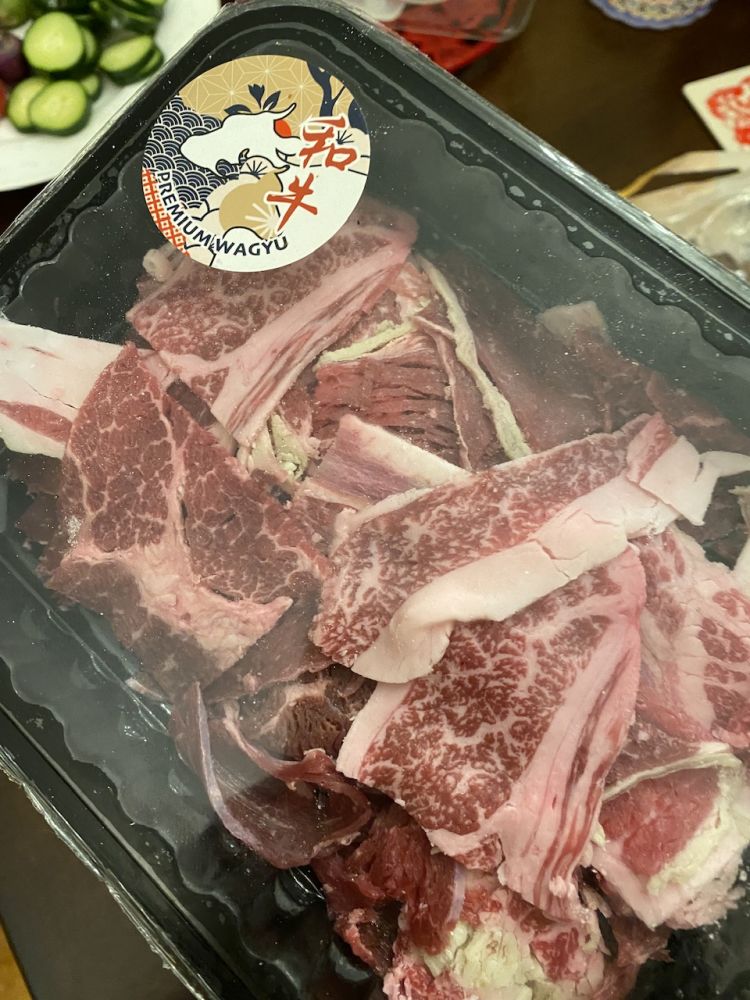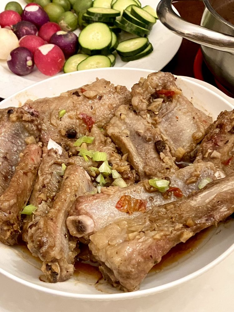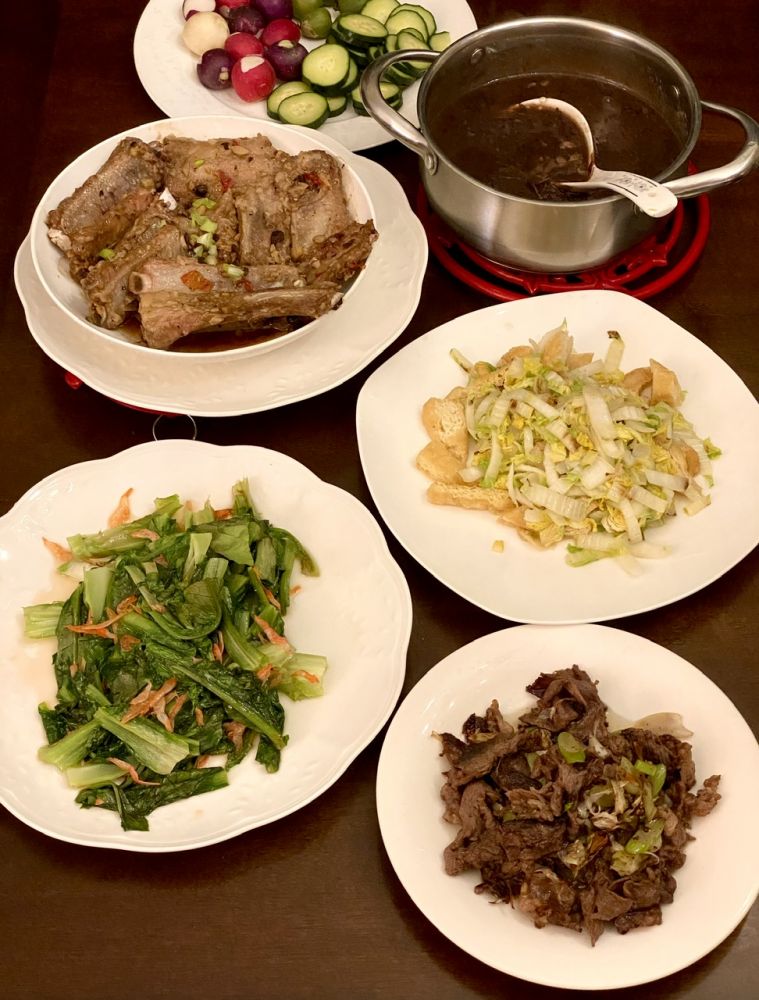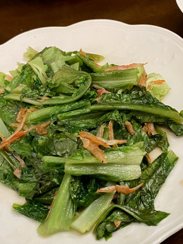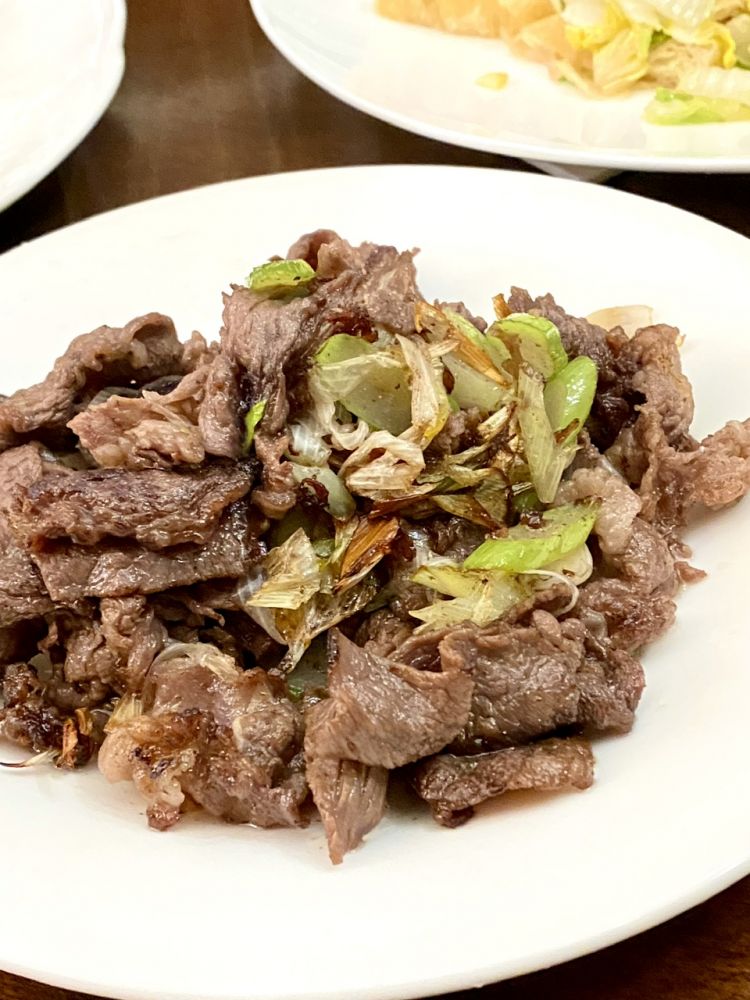葱爆牛肉、蒸伊比利亚猪排骨、樱花虾油麦菜、白菜豆泡