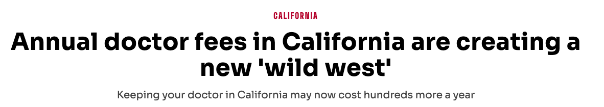 以洛杉矶为例,一位患者在2021年收到家庭医生的通知,称诊所将开始收取每位患者每年250美元的年费。由于她和丈夫均在该诊所就诊,这意味着家庭每年需额外支出500美元。最终,这位患者为了避免这笔开销,选择更换了医生。