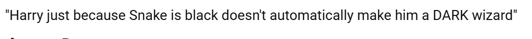 “想象这种台词的出现——哈利,斯内普是黑人并不意味着他就是黑巫师!”