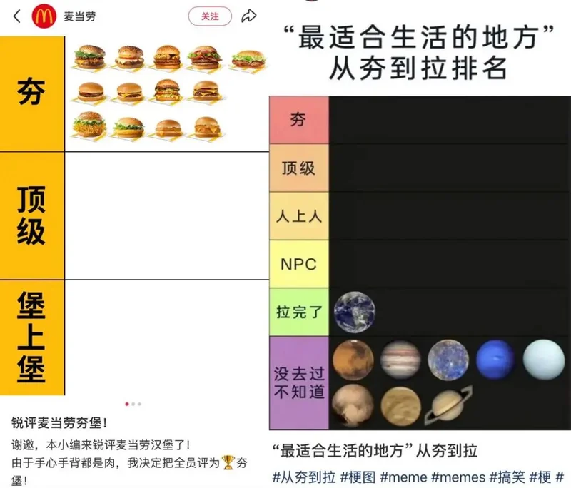 近期中文互联网有个热梗:从夯到拉排名。对象包括但不限于旅游景点、大学饭堂、奶茶咖啡。