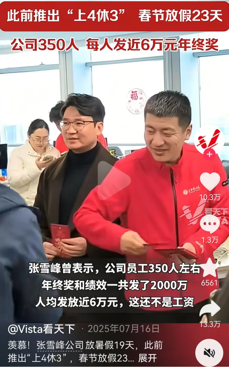 其实2023年6月那个高考季,张雪峰觉得公司干得很辛苦,就决定要补偿一下。
