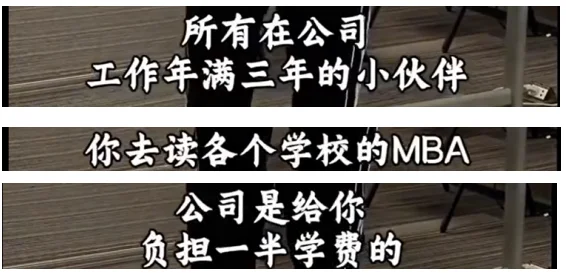 他也不偏心,大家都有。因为内部培训规定,干满三年的员工,你去读在职MBA或者在职研究生,公司就负担一半学费。