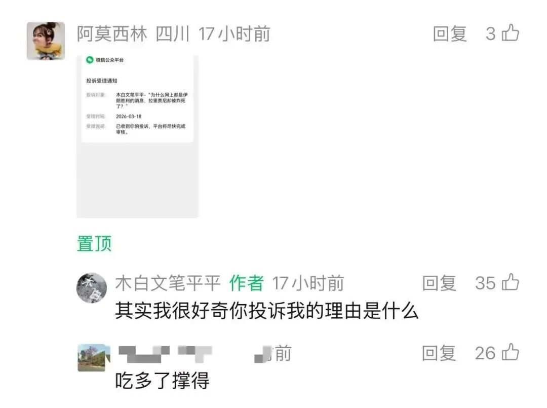 我昨天的文章贴出了一张举报我的截图,她举报了我,将举报我的截图发给我。