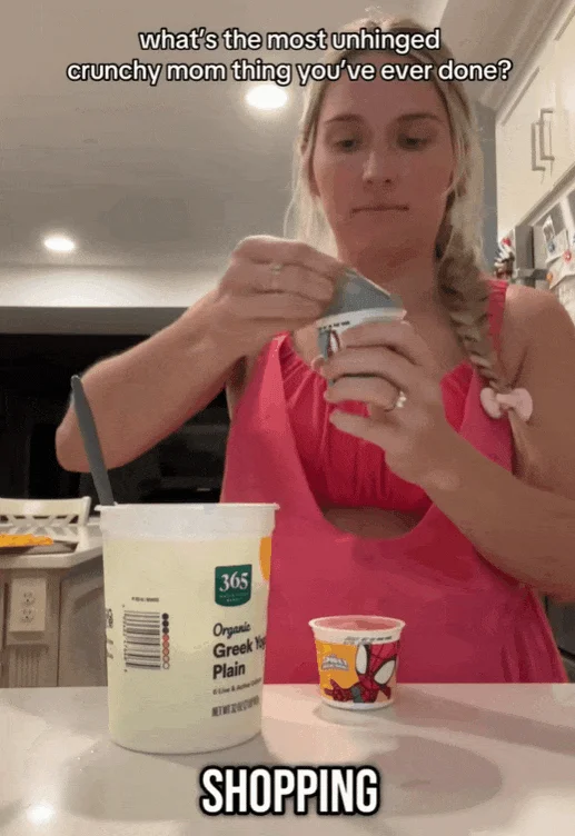 文章开头的那一幕正是一个纯天然妈妈做的事情,把超市买来的酸奶倒掉,替换成自制无糖酸奶放到超市酸奶杯里给孩子喝。