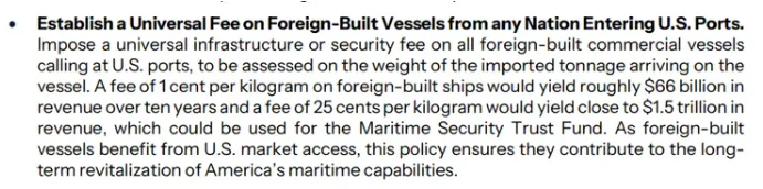 《美国海事行动计划》收费条款原文